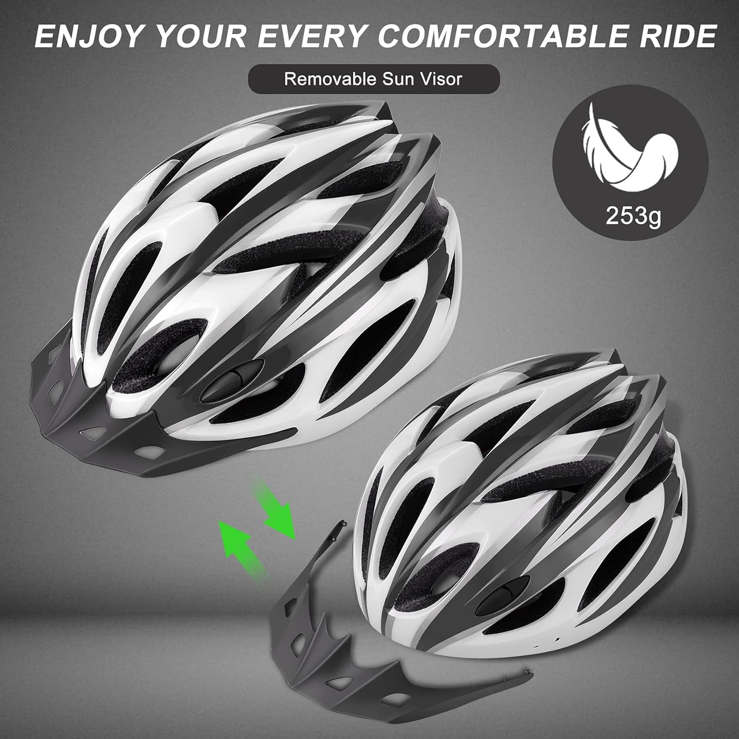 • REMOVABLE INNER PAD AND VISOR: The visor comes with an adult bike helmet that can be easily and securely removed to help keep the sun out of your eyes and prevent rain from getting into your eyes while riding. The wrap-around padding increases comfort and is easy to clean as it is removable, strengthening the internal structure and ensuring your head is fully wrapped in a secure and breathable condition.