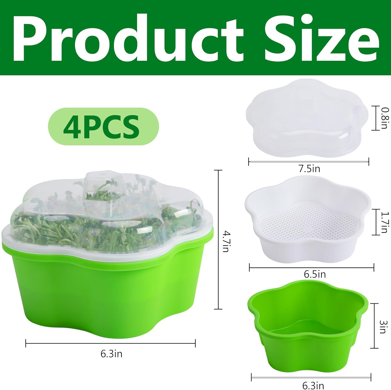 - Package includes: You will receive 4 sets of sprouting trays, each set of trays contains a bottom tray,an inner tray and a lid.the bottom tray size: 6.3″x3″, inner tray size: 6.5″x1.7″(seed not included).The larger capacity and sufficient quantity can meet your daily use and replacement needs.